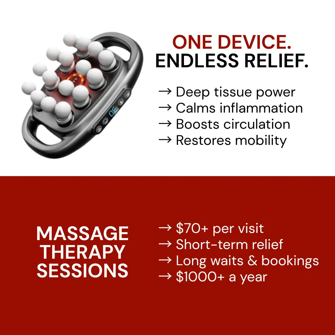 Why pay hundreds or even thousands each year on massages, painkillers, or chiropractor visits that only provide temporary relief? ReliefPulse Pro 3 delivers professional-level results at home in minutes with deep, heated therapy.